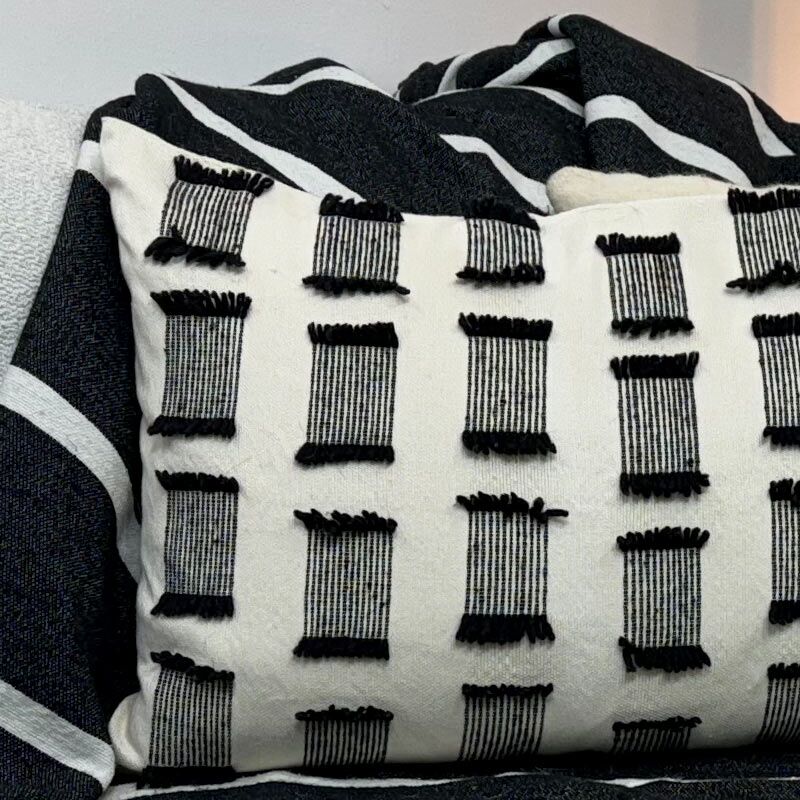 Une housse de coussin artisanal aux motifs géométriques