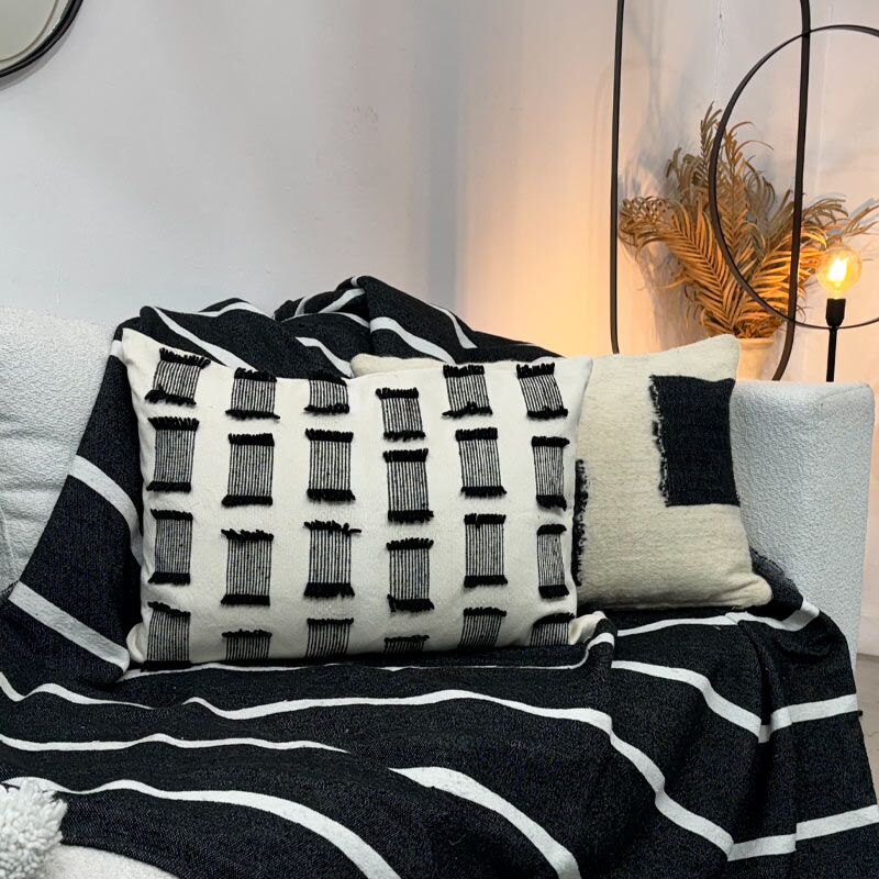 Le coussin Damia Noir et Blanc se marrie parfaitement avec les coussins Alinea et Teddya. Le jeu des motifs s’inscrit parfaitement dans les tendances de décoration actuelles. Jouez avec les motifs et la taille des coussins tout en gardant une harmonie quant aux couleurs pour une décoration de votre pièce sans fausse note.