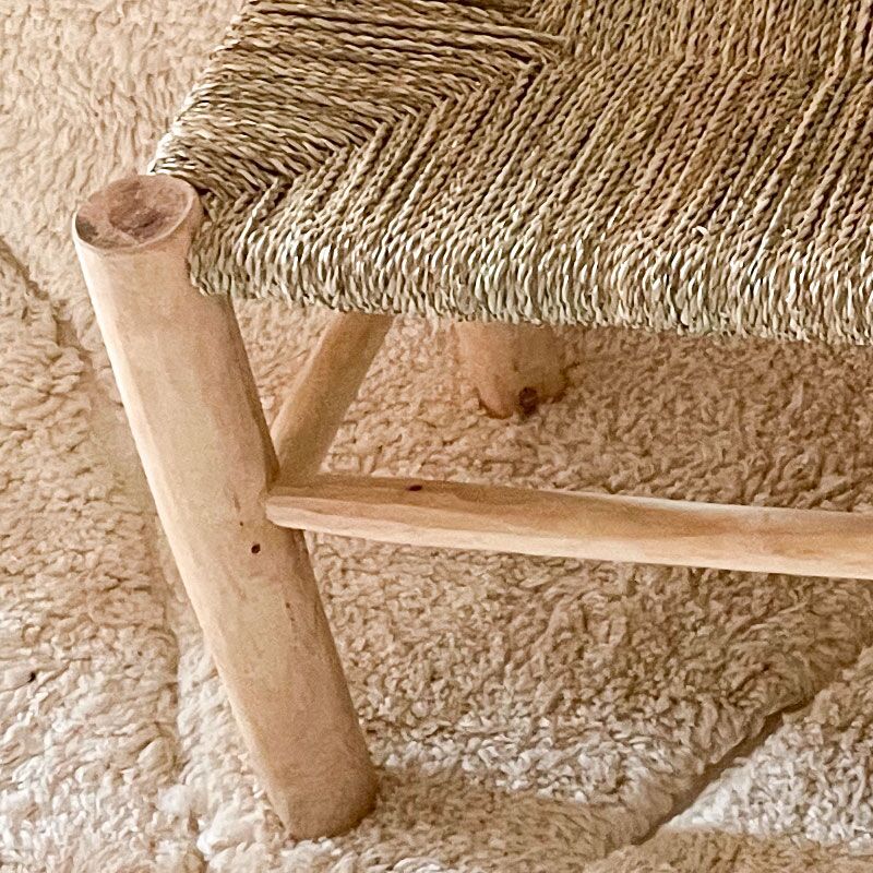 Le banc Manta est un produit artisanal marocain constitué d’une structure en bois naturel et d’une assise en corde de doum naturel noir très solide.